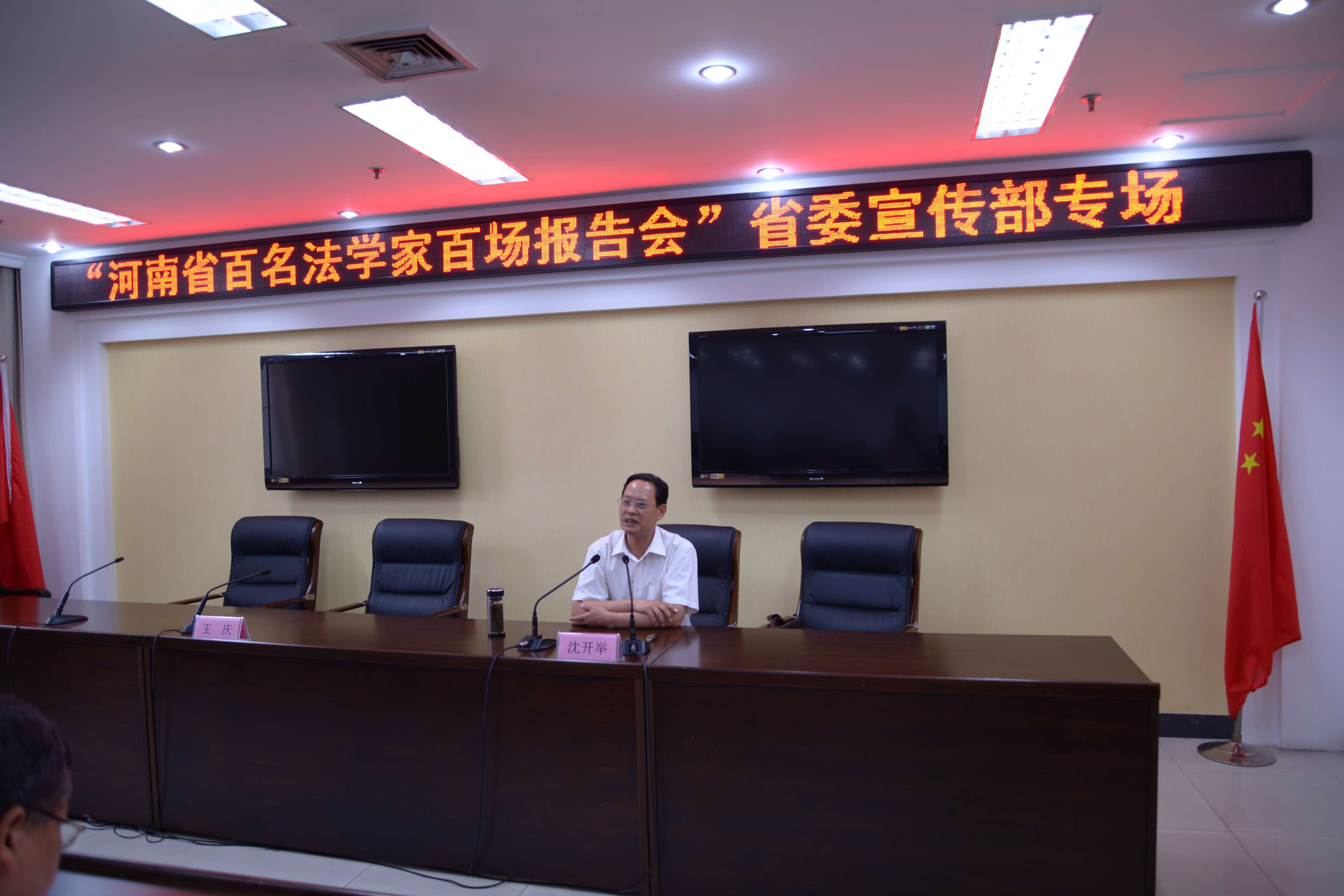 為更好地把握依法治國(guó)與加強(qiáng)黨的領(lǐng)導(dǎo)的關(guān)系,明確宣傳思想文化工作在推進(jìn)依法治國(guó)中的責(zé)任,根據(jù)省委組織部、宣傳部、政法委等聯(lián)合下發(fā)的《2015年河南省“百名法學(xué)家百場(chǎng)報(bào)告會(huì)”法治宣講活動(dòng)實(shí)施方案》,省委宣傳部機(jī)關(guān)于2015年8月14日(周五)下午舉行了“河南省百名法學(xué)家百場(chǎng)報(bào)告會(huì)”省委宣傳部專(zhuān)場(chǎng)。