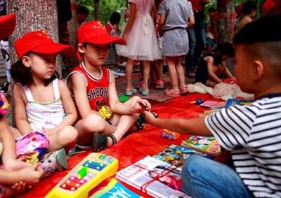 當(dāng)天上午不到九點(diǎn)鐘,活動現(xiàn)場早已布置就緒,90多個取得“攤主”資格的孩子們精心布置著自己的攤位,把自己心愛的物品整齊有序地排列,小攤位上各種書籍、玩具、工藝品、文具等物品琳瑯滿目。九點(diǎn)鐘活動正式開始,孩子們在各個攤位前流連,仔細(xì)挑選喜愛的物品,用自己帶來的東西“攤主”置換。“我很喜歡你的小手槍,我能拿這本《格林童話》的書換嗎?”“我用一支圓珠筆換到了三個筆記本呢!”……有的孩子為了“招攬生意”大聲吆喝著,還有的彼此自我介紹成了新朋友,忙的不亦樂乎,現(xiàn)場空前熱烈。許多家長表示,這樣的活動非常有意義,不僅讓孩子換得了新的玩具,還培養(yǎng)了勤儉節(jié)約的良好習(xí)慣,一舉兩得。