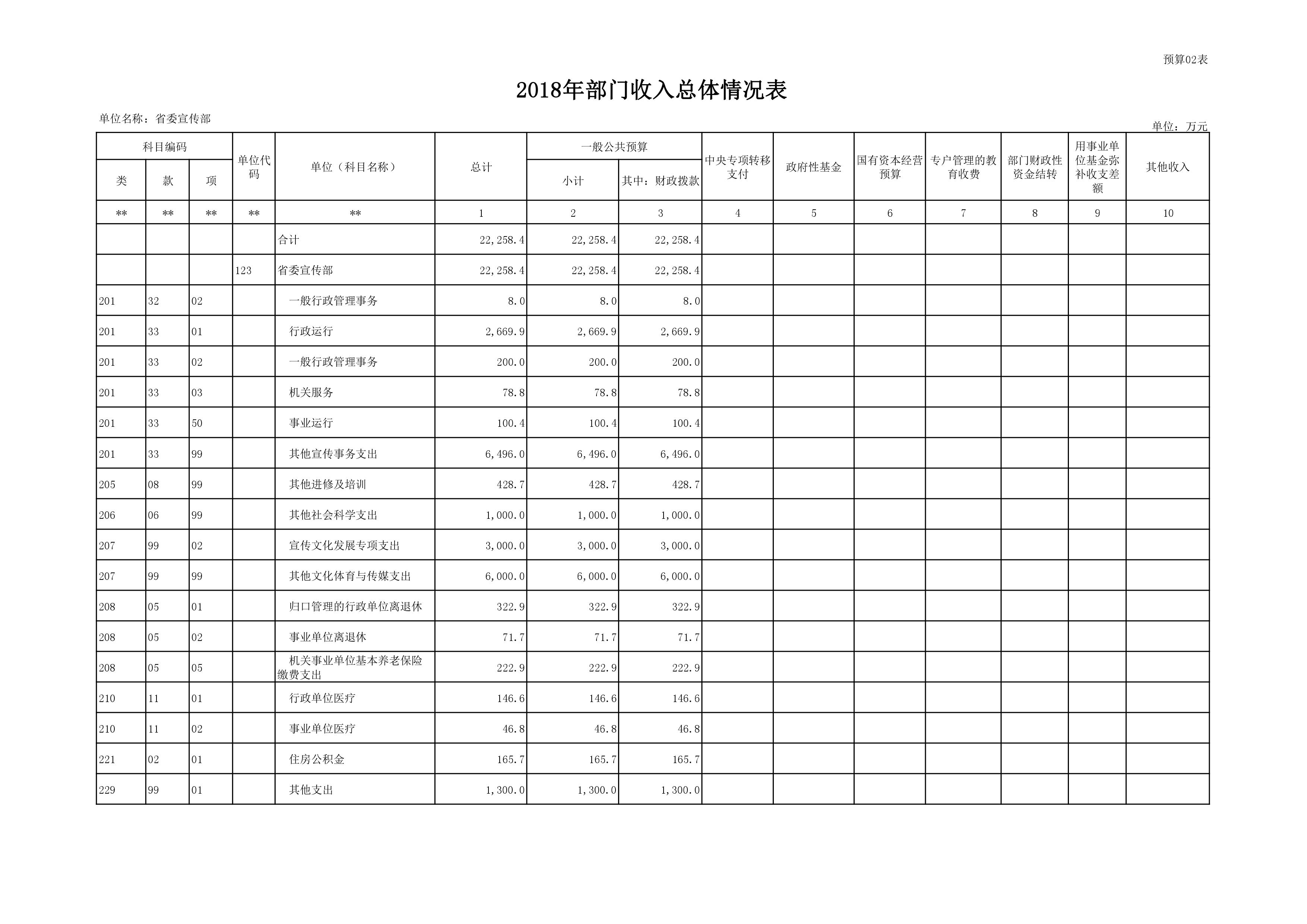 2018年度中共河南省委宣傳部部門預(yù)算公開