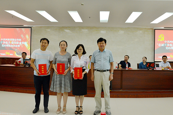 7月7日下午,省委宣傳部舉辦“忠誠干凈擔當 愛崗敬業(yè)奉獻”黨的理論知識競賽,省委網(wǎng)信辦副主任蔡新民同志、省委宣傳部副巡視員趙鋼同志、《黨的生活》雜志社總編趙云龍同志、省委宣傳部副巡視員李文良同志等部領導出席,部機關全體黨員參加。
