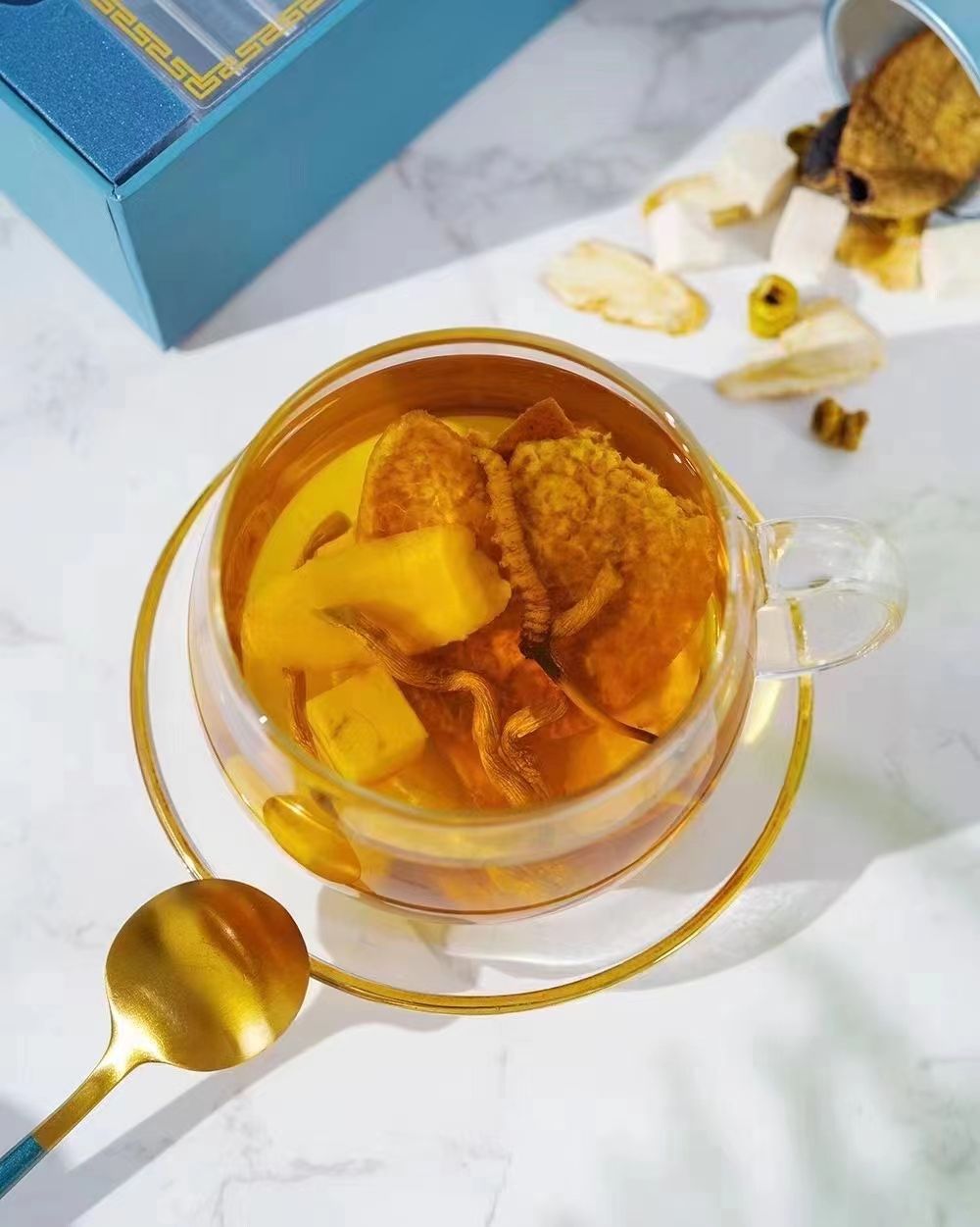「原料」冬蟲夏草6g,甲魚500g,生曬參2g,香菇10枚,海帶10g,苡米仁5g,淮藥6g,調料適量。