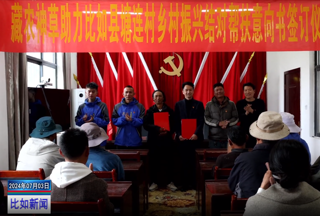 活動現場,氣氛熱烈而莊重。在藏農神草有限公司董事長李東強的帶領下,企業(yè)代表與塘連村兩委及駐村工作隊共同簽訂了助力鄉(xiāng)村振興結對幫扶意向書。這一舉措標志著藏農神草有限公司正式加入塘連村的鄉(xiāng)村振興事業(yè),將為當地的發(fā)展注入新的活力。
